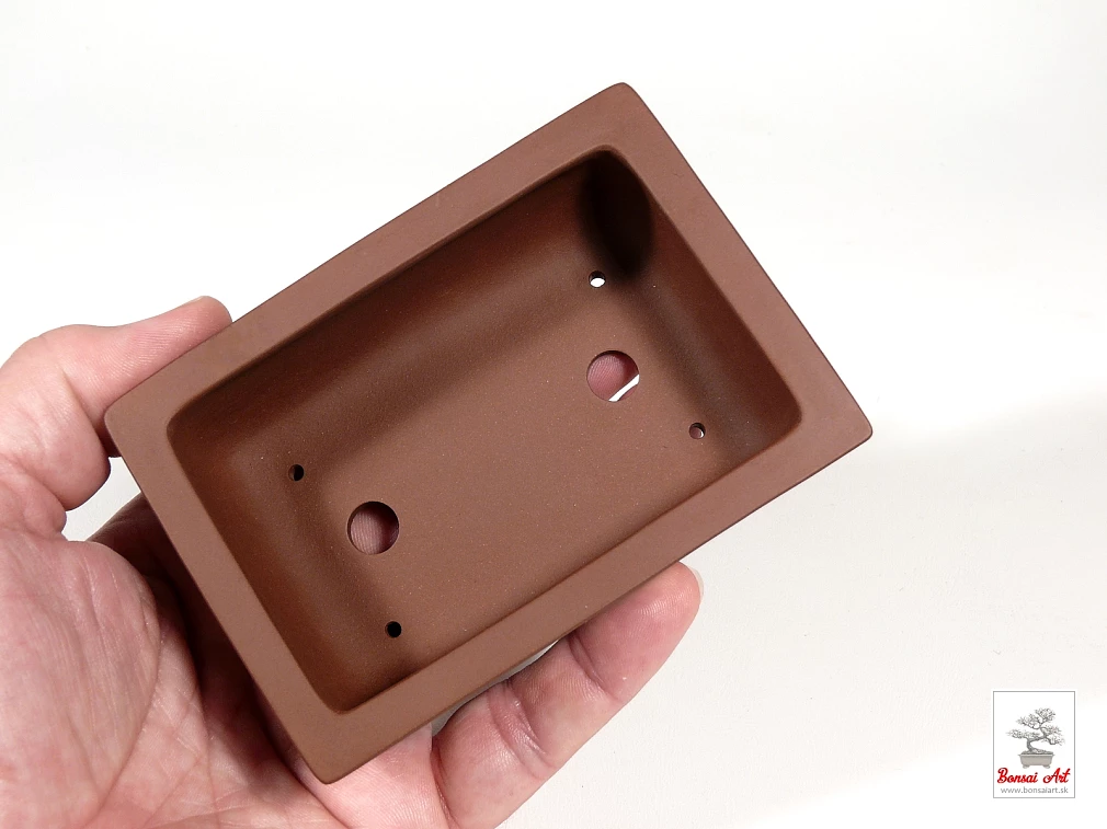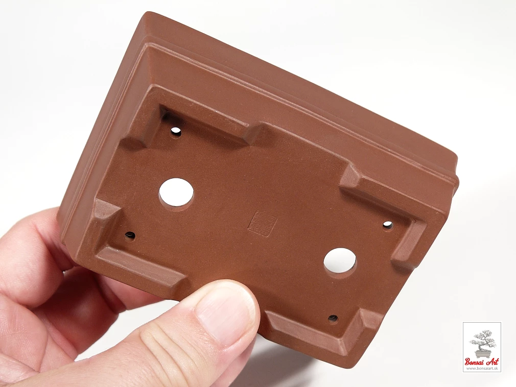 Obdĺžniková keramická bonsai miska s veľmi hladkým jemným povrchom. Miska sa hodí skôr pre menšie bonsaje alebo kusamono. Bonsai miska má pekný dovnútra rozšírený horný okraj, ktorý slúži na zadržanie koreňového balu, nehrozí tak vyvrátenie rastliny z misky. Bonsai miska je vhodná pre bytové aj vonkajšie bonsaje. Je mrazuvzdorná. Čínska keramika yixing.