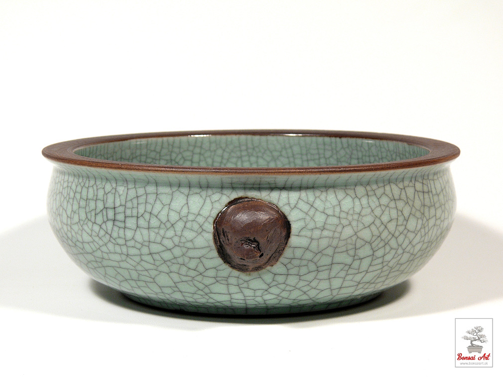 Čínska miska s popraskanou zeleno sivou glazúrou
