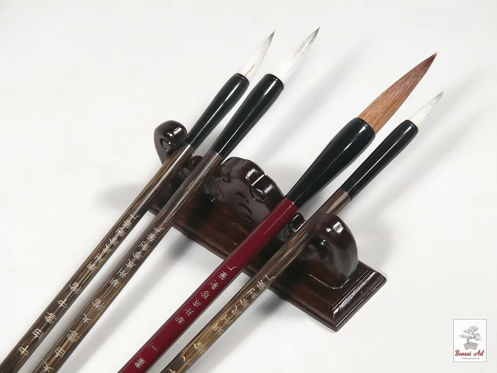 Sada kvalitných štetcov na čínsku kaligrafiu a maľovanie s bielo sivými vlasmi v troch veľkostiach. Telo každého štetca je rovné, hladké a príjemne sa drží. Je vyrobené z kvalitného tvrdého plastu so vzhľadom dreva, ozdobené čínskymi znakmi. Na konci rukoväte je slučka na zavesenie. Pracovná časť je chránená plastovou krytkou. Pred prvým použitím treba vlas prepláchnuť vo vode. Pôvod Čína. Cezen. Vhodné pre začiatočníkov aj profesionálnych umelcov.